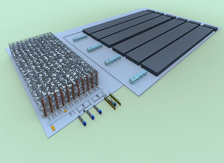 光伏產業在最近幾年時間里得到飛速發(fā)展,可分為光伏原材料如多晶硅、玻璃等以及光伏組件。大多數光伏產品是以整托形式出入庫,其重量較重,尺寸較大,且存儲量一般較大,給自動化物流設備帶來一定的挑戰(zhàn)。